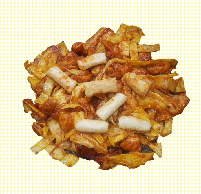 닭다리살, 양배추, 고구마, 대파, 떡