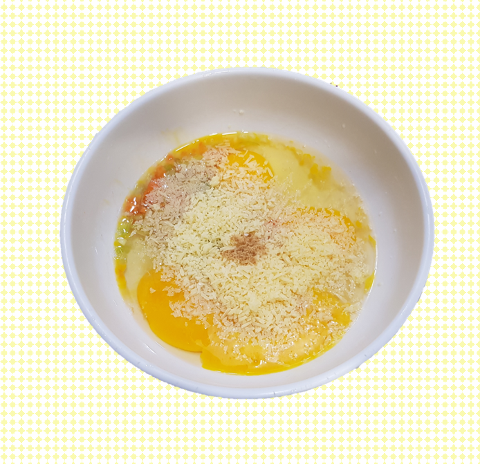 2. 계란은 풀어 야채를 섞어주고 다시다와 맛소금을 약간씩만 넣어 간을 합니다.