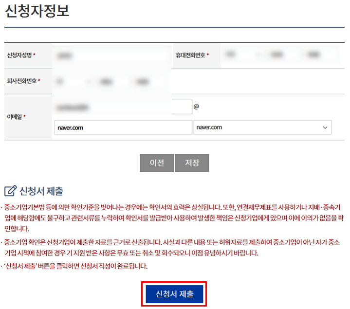 신청서 작성 탭을 들어가면 사업자 유형 선택 > 동의 진행 > 신청서 작성 > 상시근로자 현황 입력 > 신청자정보 입력까지 한 후 신청서 제출을 눌러주시면 됩니다.