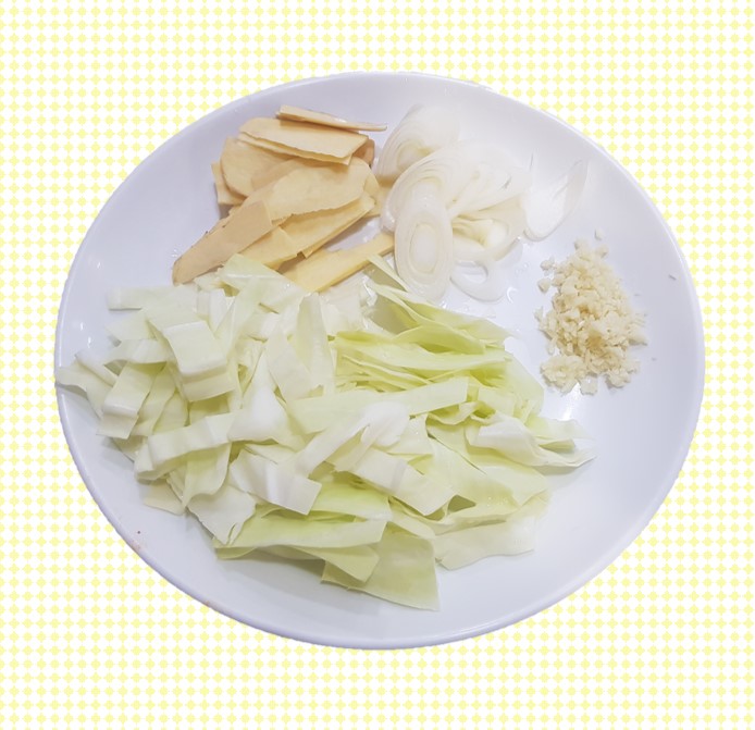 2. 양배추, 양파, 대파를 먹기좋게 썰어둡니다. 고구마는 잘 안익기 때문에 얇게 썰어둡니다.