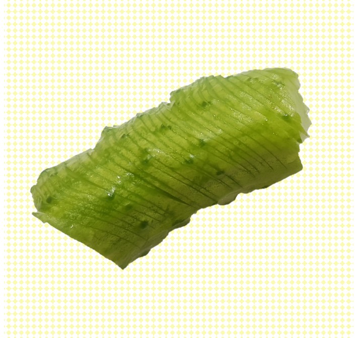 2. 오이는 반개 혹은 1/3개를 자바라 썰기로 썬 다음, 소금물에 절입니다.