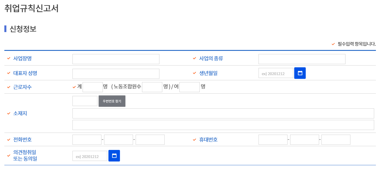 2. 취업규칙 신규신고 or 변경신고 신청 클릭 후 신고서 작성